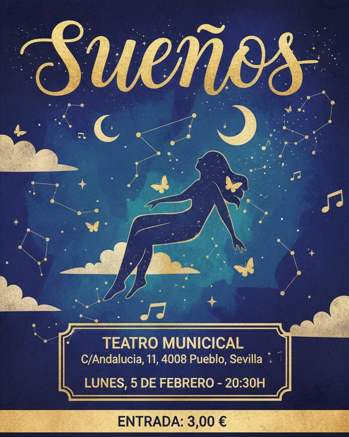 Adquiere tu entrada para una velada cultural especial con la representación de la obra «Sueños». Un evento que tendrá lugar en el emblemático Teatro Municipal.